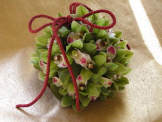 | グリーンのシンビジュームの花を一輪づつ使ったボールブーケ。シンプルですが、存在感のあるブーケです。 華やかな色内掛けをより一層引き立ててくれました。 |