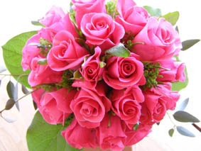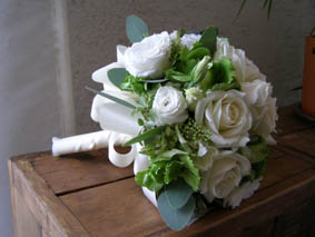 | 純白のバラを用いたベーシックなブーケ 教会式やガーデンウエディングなど幅広い演出が可能です。 |